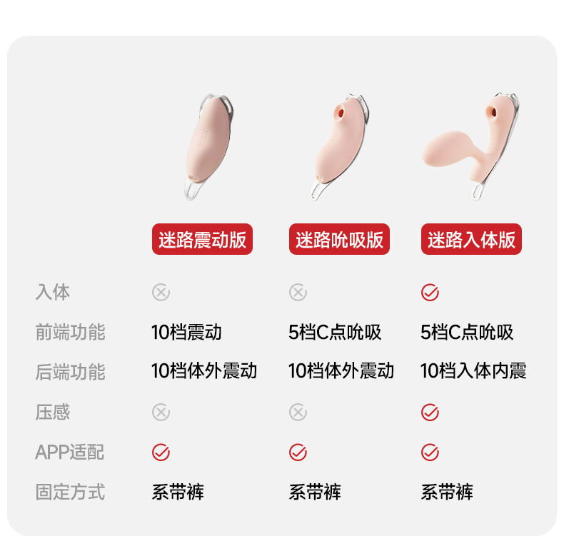 Kisstoy迷路智能穿戴跳蛋,采用高弹力系带裤型物理固定设计,提供稳定不掉落的穿戴体验。四条可调节的高弹绑带,贴合不同体型,紧贴私处,让每一次震动都精准刺激。轻巧设计与<60分贝的静音技术,让你大胆从卧室走向街头,随时随地享受私密快感。